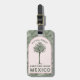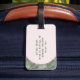 Dieses Gepäckanhänger hat ein Bild einer Palme in einem rosa Bogen mit einem tropischen Blattmuster im Hintergrund.