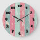 Rosa und grüne Streifen Große Wanduhr