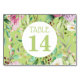 Rosa und grüne blumenreiche Hochzeitskarte Tischnummer. Tischnummer ist von beiden Seiten sichtbar.