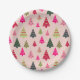 Rosa und grüne Weihnachtsbäume Pappteller