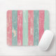 Eine raue und verwitterte Zaunstruktur in rosa und grüne Streifen.