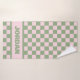 Dieses kontrastrosa und grüne Schachbretthandtuch kann mit einem Namen versehen werden, was es zu einem besonderen personalisierten Geschenk macht. Ob Sie zum Strand gehen, am Pool abkühlen oder im Park ein Picknick machen, diese Handtücher sind lebendig, nützlich und stilvoll. Diese Handtücher dienen nicht nur dem praktischen Zweck, sondern sind auch ein herzliches Geschenk, das man dem Namen des Empfängers anpassen kann.