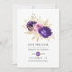 Elegante Rosa und lila Blume Hochzeit speichern Sie die Dattelkarte mit Imitaten goldenen Folienakzenten und ein elegantes Gitter Rückwärtsspiel, das auf Ihre Event-Besonderheiten angepasst werden kann.