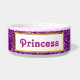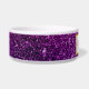 Eine Schüssel mit einem extravaganten und eleganten Design. Der Hintergrund besteht aus rosa und lila funkelnden Glitzer-Edelsteinen. Trendy und feminin. Ein Rechteck mit einem Imitat-goldenen Rahmen oben platziert.