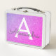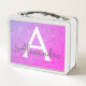 Rosa und Lila Glitzer- und Sparkronmonogramm Metall Brotdose