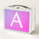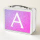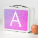 Rosa und Lila Glitzer- und Sparkronmonogramm Metall Brotdose