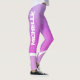 Diese modernen Workout-Leggings sind in trendigen Rosa- und lila-Tönen gehalten, wobei beide Seiten in weißem Schriftart mit allen Kaps individuell einstellbar sind.