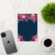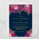 Mit dieser edlen Goldfolie laden Sie Ihre Gäste zu einer Hochzeit ein, die mit einem hübschen rosa und lila Blumenstrauß mit Aquarellfarben-Rose, grünen Blätter, Goldgräbern und blauen Hintergrund aufwartet.