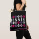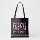 Die Tasche ist so konzipiert, dass sie das bereits beschriebene, lebendige und visuell auffällige Bild ergänzt. Sie besteht aus rosa und lila Tennisbällen, die in vier Reihen horizontal auf einem schwarzen Hintergrund angeordnet sind. Diese Tasche bietet sowohl praktische als auch stilvolle Eigenschaften und ist somit ein vielseitiges Zubehör für verschiedene Anlässe. Der aus langlebigen Materialien gefertigte Totbeutel ist sehr geräumig und robust und bietet ausreichend Platz für die täglichen Essenzen, Lebensmittel oder sogar Sportgeräte. Das Design der Tasche verbindet Elemente aus dem dynamischen Tennisball-Muster und schafft so eine lebendige und dynamische visuelle Attraktion. Die lila und rosa Farbtöne sind wahrscheinlich hervorgehoben, was dem Gesamtbild der Tasche einen Pop Farbe verleiht. Dieser Totbeutel ist nicht nur ein funktionelles Zubehör zum Tragen von Artikeln, sondern auch ein modisches Statement-Stück. Sein sportliches und dynamisches Design passt zu einem aktiven Lifestyle und ist somit ein idealer Begleiter für Ausflüge in den Fitnessraum, den Tennisplatz oder den Alltag. Die Kombination aus kräftigen Farben und einer robusten Konstruktion schafft eine einzigartige und auffällige Tasche, die Aufmerksamkeit zeichne, wohin man will. Es ist eine vielseitige und modische Ergänzung zu Ihrer Accessoires-Kollektion.