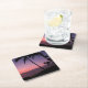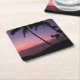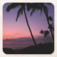 Untersetzer mit einem rosa und lila Himmel während eines Sonnenuntergangs an einem Strand mit schwarzen SilhouettePalmen auf der tropischen Insel von Maui, Hawaii.