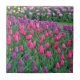Rosa und lila Tulpefrühlingsgarten Fliese
