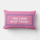 Einfach und unterhaltsam, dieses zweiseitig rosa und lila Lumbalkissen verfügt über ein gewelltes Rechteck und zwei verschiedene, aber koordinierende Seiten mit freundlichen Erinnerungen, um die Positivität in Ihrem Leben und Ihrer Zuhause zu verbreiten. Sie können den Text auch für Ihre eigene Nachricht ändern!