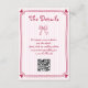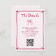 Niedlich rosa Hand gezeichnete skizzenhafte Retro Französisch Stil Hochzeit senkrechten Gehäuse Karte. Diese hübsche, vertikal ausgerichtete Kapselkarte verleiht Ihrer Hochzeit eine Touch skurrilen Retro-Charme. Mit einem handgezeichnet magentafarbenen Design präsentiert es spielerische Illustrationen eines Bogens und eines herzzentrierten Rahmens. Das Wort "Details" wird spielerisch auf einem rosa und weiß gestreiften Hintergrund angezeigt, und ein komfortabler QR-Code ist für den einfachen Zugang zu weiteren Informationen über Hochzeiten enthalten.