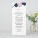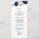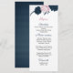 wunderschöne rosa und marineblaue Blumen und elegante Blätter botanisches Hochzeitsmenü.