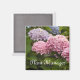 Herrliche, rosa, violette und blaue Hydrangeas mit ausdrucksvollem Sprichwort.