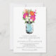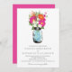 VON WECKGLAS GERBER GÄNSEBLÜMCHEN, DIE SAMMLUNG WEDDING SIND: Weckglas füllte mit orange und pinkfarbenen rosa Gerber Gänseblümchen und kleinen weißen Gänseblümchen. Eine pinkfarbene Farbe auf der Rückseite der Karte.