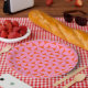 Rosa und orange Mitte des Jahrhunderts Modernes Mu Pappteller