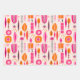 Farbenfrohe Verpackungspapiere mit abstrakten modernen Mustern in rosa, orange und schwarz. Linien, Punkte, geometrische Formen und Farbblöcke; dieses Pack ist voller Stil und Ästhetik!