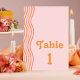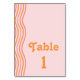 Rosa und orange Retro Groovy Wedding Tischnummer