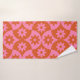 Das sind niedliche Retro-Orange- und Rosa-Blume auf Vintagen Jakobsformen aus der Mitte des Jahrhunderts. Es ist ein tolles Badehandtuch für Ihr Badezimmer