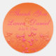 Dieser 1,5" Durchmesser heißen rosa und orange Blumenmotiv danke Ihnen Aufkleber/Umschlag Aufkleber passt zu der Einladung und anderen Artikeln unten gezeigt. Es gibt auch passende Porto, um Ihnen zu ermöglichen, eine schön koordinierte Dankeschön-Karte auszusenden. Sie können den Text ändern, um zu sagen, was Sie gewollt haben, und Sie können auch die Aufklebergröße auf 15 cm ändern, was ideal wäre, um Ihre Hochzeit/Gastgeschenke zu schmücken. Wenn Sie weitere passende Artikel in diesem Design benötigen, schicken Sie mir bitte Ihre Anfrage an niteowlstudio@gmail.com.