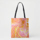 Korallenfarben, gelbe und orangefarbene Malzellen Marmor wie Wirbel abstrakte Kunst.