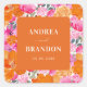 Rosa und orangefarbene Sommerblumenhochzeit Quadratischer Aufkleber