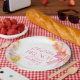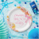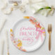Blumenbrunch & Bubbly Brautparty-Papier-Teller in einem lebhaften Rosa- und Orangenmotiv und Coquette-Bogen