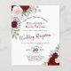 Diese preiswerten und preisgünstigen Einladungen sind für Gäste gedacht, die nur zum Empfang eingeladen werden, und nicht für die Ehezeremonie. Das elegante Design besticht durch handbemalte Aquarellfarben in den Farbtönen Rosa, Rot, Bordeaux und Korallen, mit einer Vielfalt an Eukalyptus-Blätter und Grünpflanzen. Die Typografie zeichnet sich durch extravagante Skriptkalligraphie aus, und die Rückseite ist eine tiefmarmorierte bordeauxfarbene. Der perfekte Weg, um Ihre Hochzeit zu feiern, ohne ein Vermögen für die Einladungen zu verbringen.