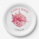 Rosa und rote Blume, Hochzeit mit Palmenblättern Pappteller