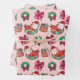 Rosa und rote Kawaii Weihnachtskatze Geschenkpapier Set