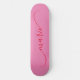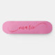 Erstellen Sie Ihr eigenes elegantes Script Skateboard für sie. Passen Sie die Größe des modernen, geschwungenen, handgeschriebenen Schriftstils an, der in die LKWs und Räder passt. Wenn Sie die rote Farbe des Script-Schriftartes ändern, stellen Sie sicher, dass Sie den Karo verdoppeln, die Schattenfarbe passt zu Ihrer neuen Farbe. Ändern Sie den rosa magenta Hintergrund zu ihrer Lieblingsfarbe.