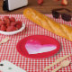 Rosa und rotes Herz Aquarell Pop Kunst Pappteller