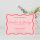 Mit dem Wavy Retro Save the Date verkünden Sie Ihren großen Tag stilvoll! Mit einem schicken, wellenförmigen Rahmen und einem zeitlosen, aber trendigen Design ist diese Karte der perfekte Set für Ihre anstehende Feier. Seine Retro-inspirierte Ästhetik verbindet sich mühelos mit moderner Eleganz und macht sie zu einer herausragenden Wahl für jedes Hochzeitsthema. Diese individuell gestaltbare Anlage sorgt Save the Date dafür, dass Ihre Gäste ihre Kalender so stilvoll wie möglich markieren.