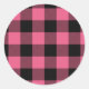 Rosa und schwarz karierte Quadrate Buffalo Kariert Runder Aufkleber