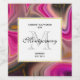 Weinbau-Etiketten mit einem groovy aussehenden abstrakten Design. Rosa und schwarze Farben mischen sich und vermischen sich in einer wirbelnden Bewegung. Sprinklen von Imitaten goldener Glitzer zwischen den Schichten. Ein weißer quadratischer Rahmen mit einem goldenen Rahmen in Imitaten, der mit dem personalisierten Text überlegt ist.