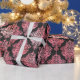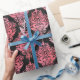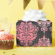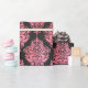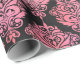 Ein Muster aus rosa Damast über einem schwarzen Hintergrund.
