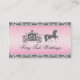 Elegante rosa schwarz-weiße Blumengestauke mit Hochzeitspferd und Kutsche, Visitenkartenvorlage.