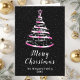 Diese elegante und schicke Urlaubskarte kann mit Ihrem Familiennamen personalisiert werden. Das Design ist mit einem rosa und schwarzen Band Weihnachtsbaum mit einem Stern Oberteil ausgestattet. Der Text kombiniert handgeschriebene Skripte mit modernen serifenlosen Schriftart für ein elegantes und raffiniertes Aussehen. Der fallende Schnee, Schneeflocken und Glitzern geben eine festliche und magische Touch.