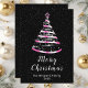 Diese elegante und schicke Urlaubskarte kann mit Ihrem Familiennamen personalisiert werden. Das Design ist mit einem rosa und schwarzen Band Weihnachtsbaum mit einem Stern Oberteil ausgestattet. Der Text kombiniert handgeschriebene Skripte mit modernen serifenlosen Schriftart für ein elegantes und raffiniertes Aussehen. Der fallende Schnee, Schneeflocken und Glitzern geben eine festliche und magische Touch.