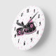 Rosa und schwarze Teekanne-Küchen-Uhr Runde Wanduhr