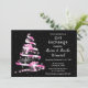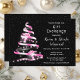 Diese elegante und schicke Geschenkeinladung mit einem rosa und schwarzen Band Weihnachtsbaum mit Geschenken. Der Text kombiniert handgeschriebene Skripte mit modernen serifenlosen Schriftart für ein elegantes und raffiniertes Aussehen. Der fallende Schnee, der Glitzer und die Glitzern geben eine festliche und magische Touch.