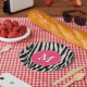 Feiern Sie Ihren Geburtstag stilvoll mit schicken, modernen, gürtnerisch rosa und schwarz zgestreiften, benutzerdefinierten Monogramm Geburtstagsfeier-Tellern. Ändern Sie den Schriftart, verschieben Sie den Text, und vieles mehr, indem Sie auf die Schaltfläche "Anpassen" klicken.