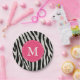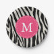 Rosa und schwarze Zebrastreifen Monogram Geburtsta Pappteller