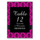 Traditionell elegante moderne schwarze und helle moderne magenta fuchsia Vintage Retro-Damast personalisierte Hochzeit oder besondere Anlass Tischnummer auf schwarzem Hintergrund. , personalisieren Sie mit Ihrem Text zu den Vorlagen für Ihre besondere Anlässe oder Feiern. Besuchen Sie den PERSONALISIERTEN _WEDDINGS STORE für passende Produkte.