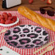 Rosa und schwarzer Leopard Pelztierdruckpunkte Pappteller