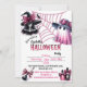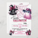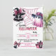 Dieses spielerische und schicke Halloween-Party lädt zu einer stilvollen Mischung aus Rosa und Schwarz ein, die Ihren sprichwörtlichen Festlichkeiten eine moderne Drehung verleiht. Das Design umfasst skurrile Elemente wie einen Geist und Skelett, die mit rosa Bögen geschmückt sind, Set vor dem Hintergrund eines zarten Spinnennetzes. Die Typografie ist eine Mischung aus gotischen und spielerischen Schriftart, die die Einladung sowohl lustig als auch lesbar macht. Mit klaren Details über das Datum, die Uhrzeit und den Ort der Veranstaltung ist diese Einladung ideal für diejenigen, die eine elegante und dennoch unheimliche Halloween-Ansammlung ausrichten möchten.