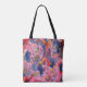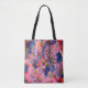 Rosa und violette Blumen Garten Original Aquarelltasche. Schöne, farbenfrohe Blume und Schmetterlinge schweben in einem ätherischen Garten. Das inspirierende eklektische Design ruft langsame und lockere Bewegungen und romantische Emotionen hervor. Mystique wird durch rosa, violette, lila und blaue Farbtöne vereinheitlicht, die mit Rot und Gelb gespickt sind, um die Energie zu steigern. Das originale freie Kunstwerk ist in Aquarellfarben handgemalt und mit Stiften der Künstlerin Aleksandra Grbic Hrustic hervorgehoben. Copyright, alle Rechte vorbehalten. Diese originelle, einzigartige, farbenfrohe und auffällige Tasche ist nicht nur die Tasche, sondern auch die Kunst und das Modestatement.