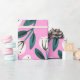 Rosa und weiße, blumengeschmückte gemusterte Umhüllung.