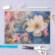Ein hübsches Design mit großer weißer Blume und kleinen rosa Blume auf blauem Hintergrund. Verwenden Sie für decoupage Projekte, Junk Journals, Collage oder Geschenkverpackung.